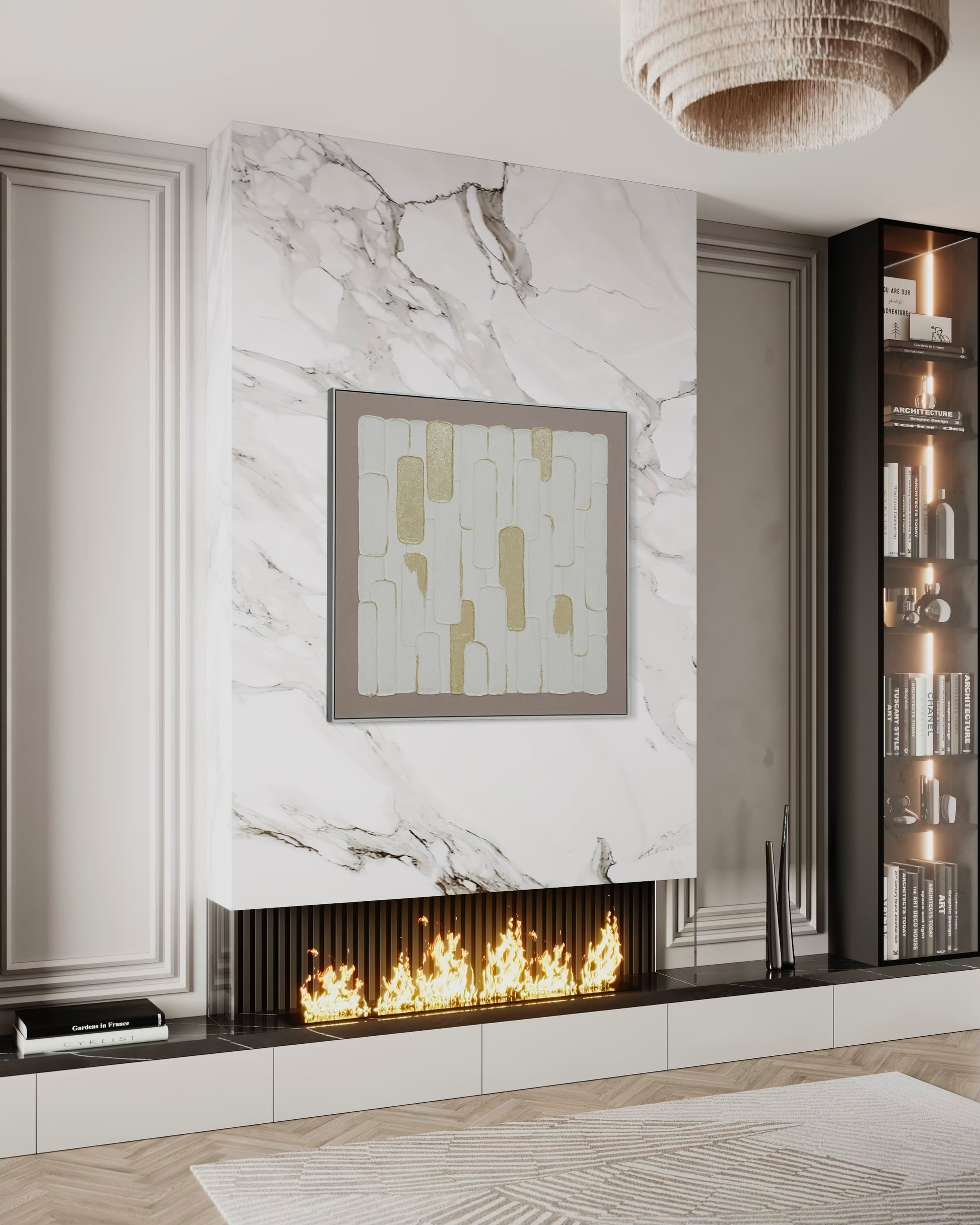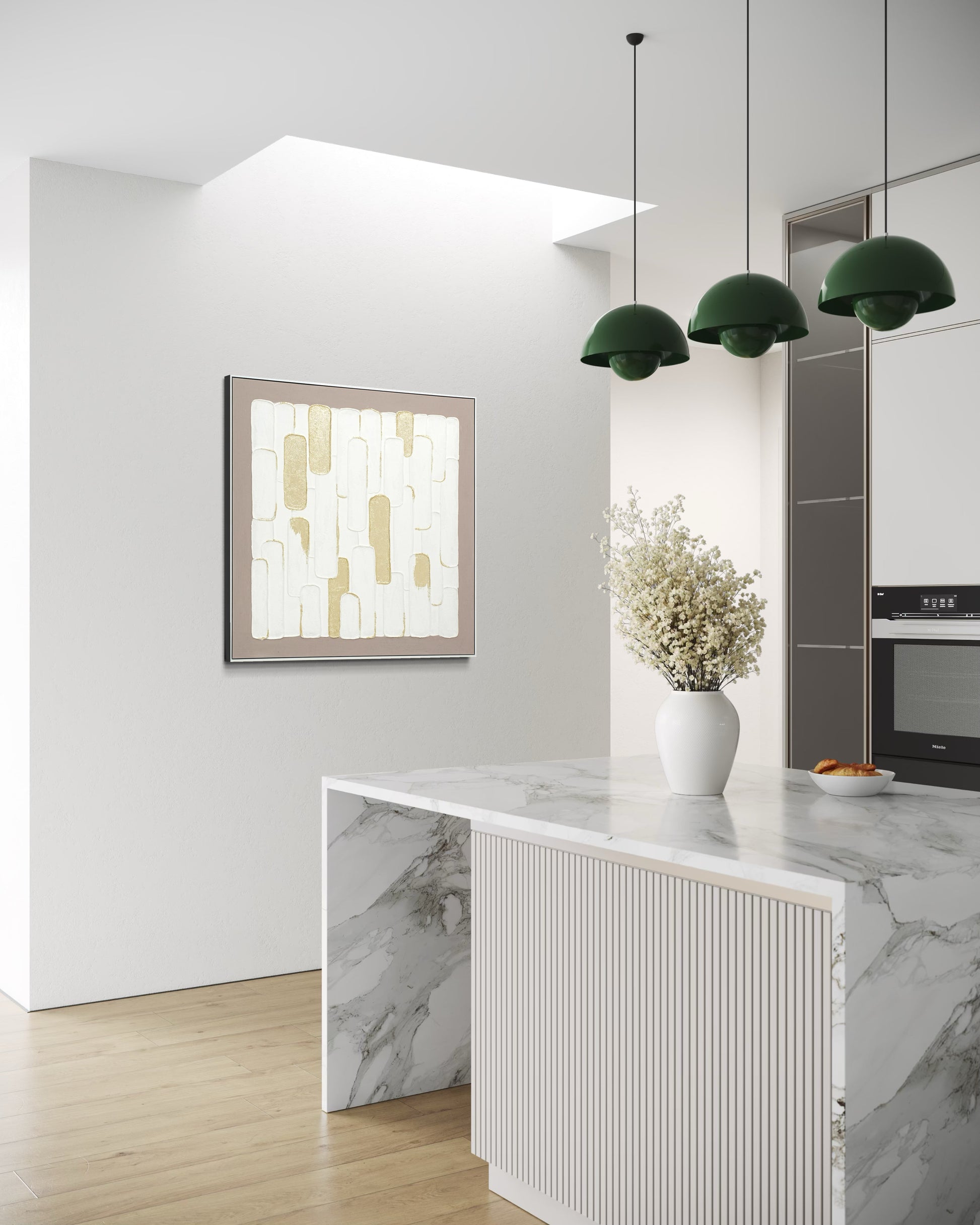 Bring refined sculptural elegance into your home with Golden Blocks Harmony, a 100% handcrafted textured artwork featuring raised block-like forms in a rhythmic contemporary pattern.