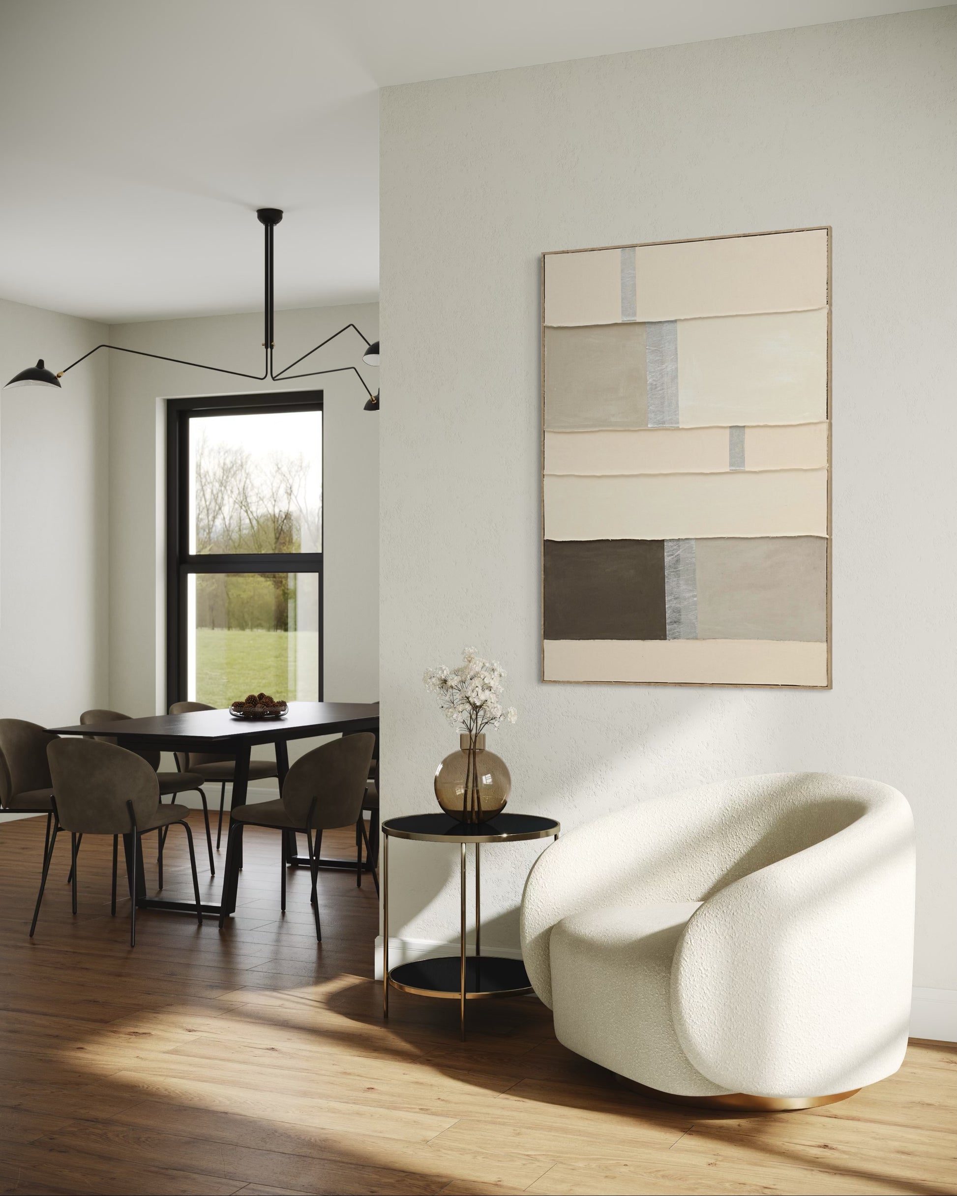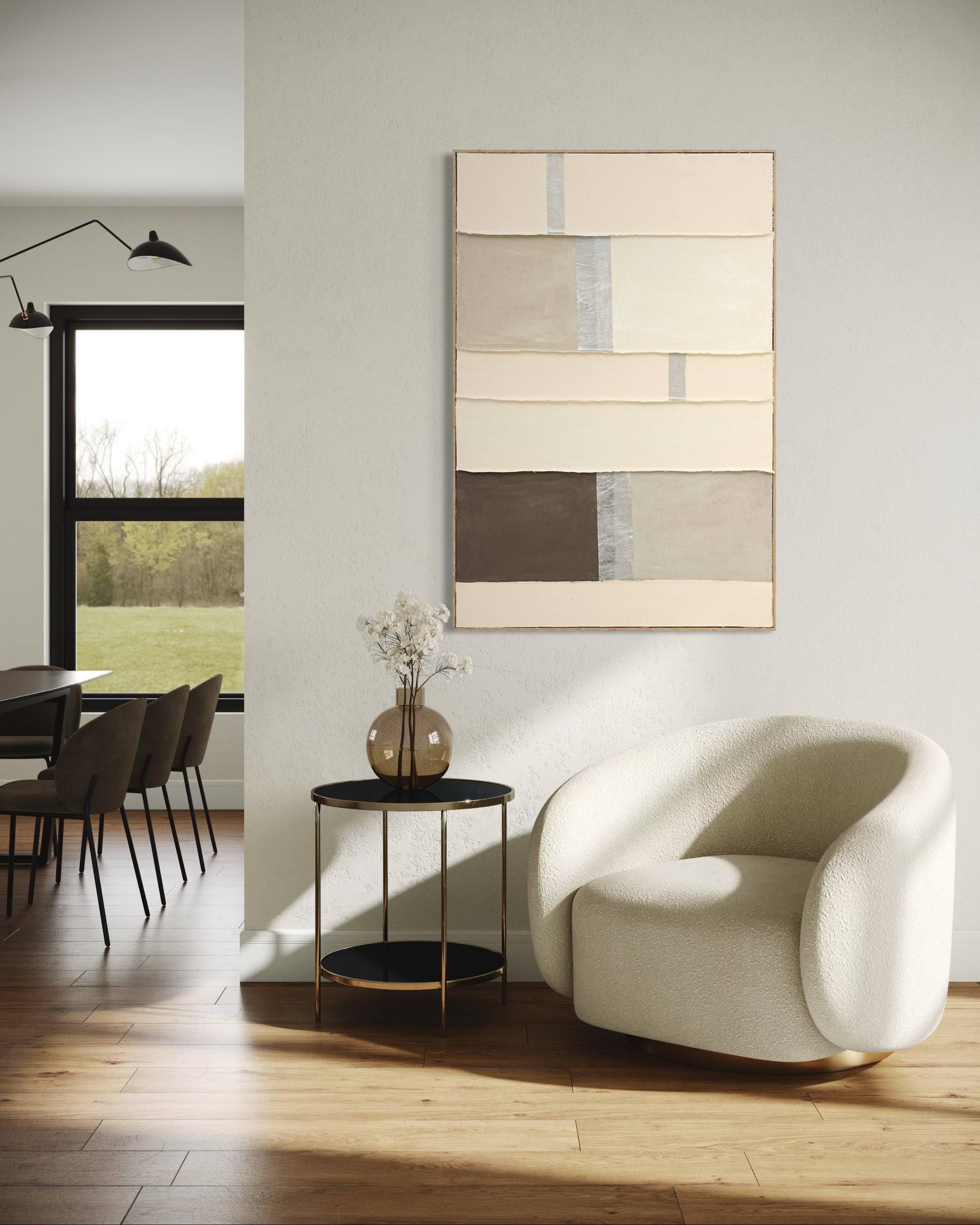 Perfect for contemporary living rooms, bedrooms, or minimalist interiors, this artwork introduces a sense of refined serenity through its tactile, sculptural presence. Each piece is individually handcrafted, ensuring every detail and texture is unique.
